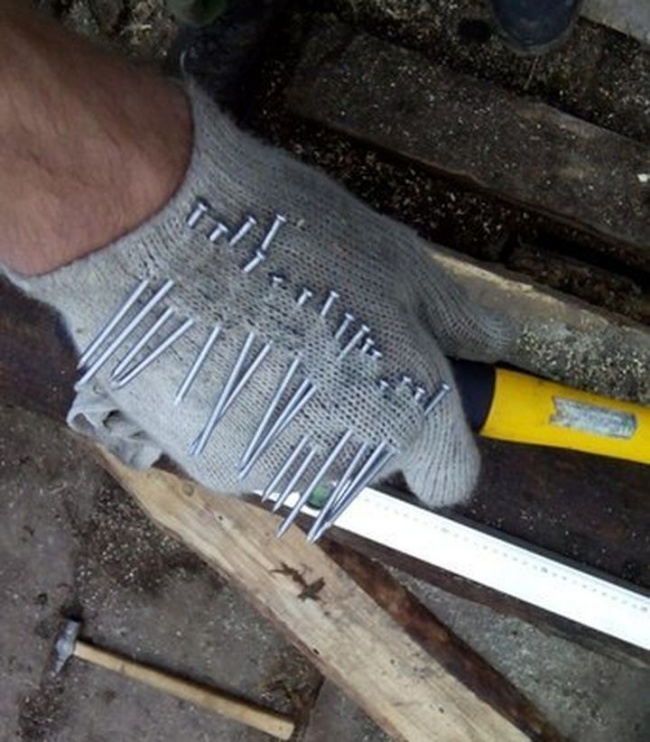 Ձեռքի մեջ կեղտոտ մեխերը չբռնելու համար օգտագործեք հին ձեռնոց