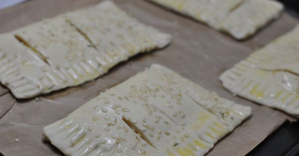 Կտրում ենք հավասար քառակուսիների կամ երկար ուղղանկյունների՝ կախված թե ինչ ձևավոր ուզում ենք (ռուլետ, եռանկյուն կամ փոքր փքված պիրոգներ)։