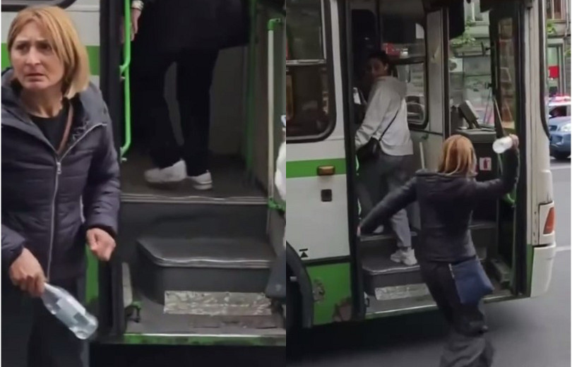 Համացանցում տարածվում է տեսանյութ, որում մի կին շիշ է նետում ավտոբուսի վարորդի ուղղությամբ: