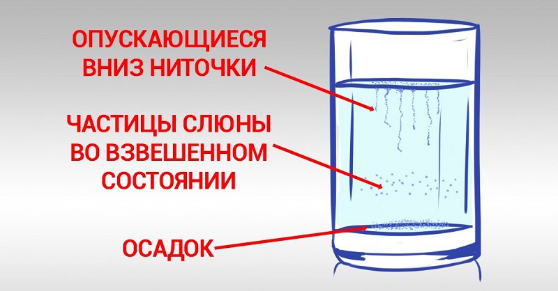 Անհրաժեշտ է բերանում որոշ քանակությամբ թուք հավաքել և թքել ջրով լի բաժակի մեջ։